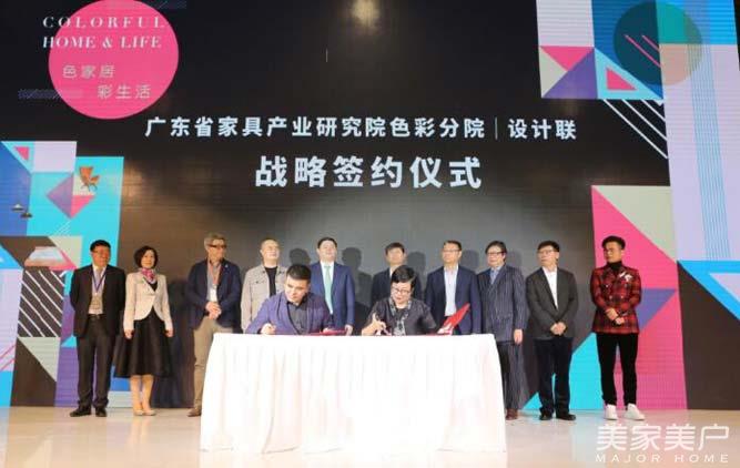 为推动色彩研究更好的服务和应用于产品,广东省家具产业研究院与设计联达成了战略合作,在会上进行了签约仪式,将会为百万的设计师提供色彩研究服务,把研究院的色彩研究成果应用到实际产品当中。