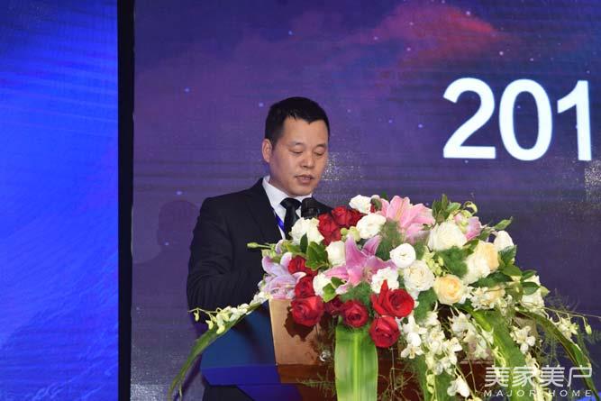 帝堡凡木制品有限公司董事长卢靖凯上台发表本年度协会的总结和报告。卢董说,黄金时代就在我们目前。今年国家环保准入门槛加高,我们也会更符合环保的要求,行业必将迎来新高度。在行业大军的共同努力下,我们坚信能为大家带来健康时尚的家居生活空间。