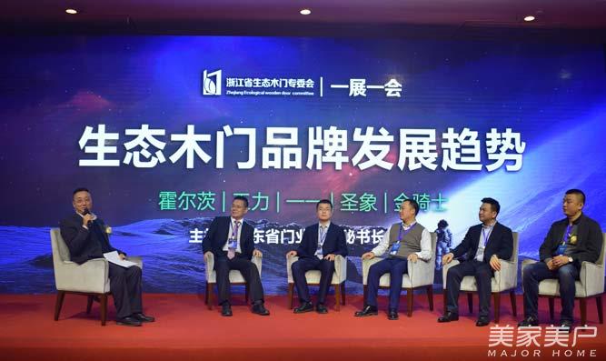 生态木门品牌发展趋势论坛主持人由广东门业协会秘书长徐生担任,论坛嘉宾分别为霍尔茨门业总经理赵崇联、王力集团木门总监罗峰涛、一一木门董事长楼双龙、圣象家具总经理曹刚、金骑士木门总经理金啸,从生态木门未来的机会在哪里、如何看待整装公司和精装修的崛起、对于品牌营销和店面运营的看法,三方面分别探讨生态木门品牌发展趋势。行业大咖进行深度对话,共同探讨生态木门的新风向。