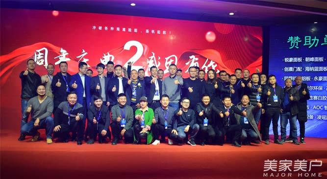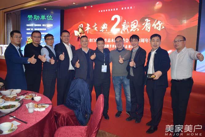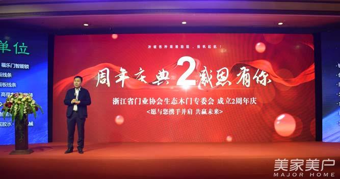 晚宴上,由中国建筑装饰装修材料协会门窗幕墙分会秘书长丁辉率先致辞。10多位嘉宾随后上台共同庆祝生态木门成立2周年仪式,30多位协会成员上台共同合影。