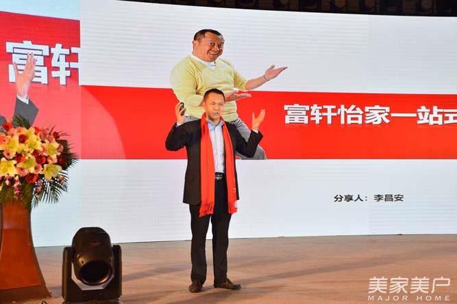 富轩门窗董事长李昌安在会上作了“富轩怡家一站式互联网整装模式思路”的专题演讲。李董通过阐述富轩成长的四个阶段,分享富轩怡家互联网整装模式新思维与创新经营模式。