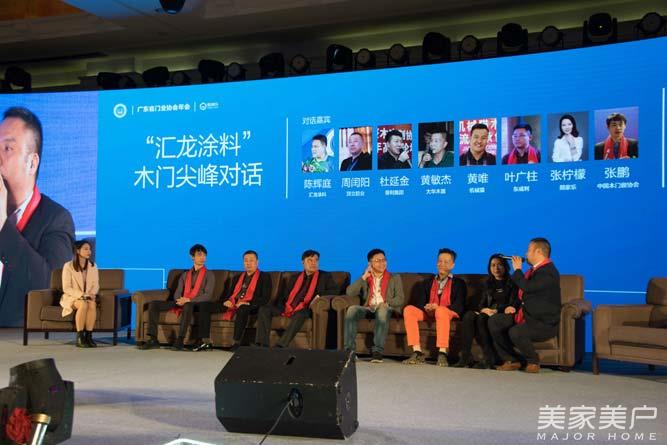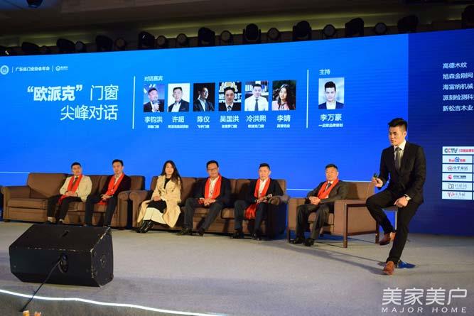 在本次年会由佛山市一品堂品牌策划董事长李万豪主持的“欧派克”门窗尖峰对话环节上,派雅门窗董事长李钧洪、欧派克董事长许超、飞宇门窗董事长陈仪、圣堡罗门窗董事长吴国洪、欧迪克门窗董事长冷洪熙、高登铝业副总裁李靖上台就各自企业在品牌、创新、技术、经营、管理等方面进行了分享。在随后由腾讯家居李家燕主持的“汇龙涂料”木门尖峰对话上,中国木材与木制品流通协会常务副会长张鹏、汇龙涂料董事长陈辉庭、顶立胶业董事长周闰阳、大华木器董事长黄敏杰、东威利总经理叶广柱、酷家乐华南分公司总经理张柠檬、机械猫董事长黄唯就木门与整木行业的发展瓶颈与趋势进行了交流与探讨。