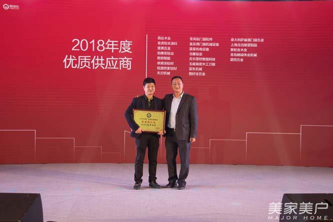 在授牌环节,嘉宾还为各省市级兄弟协会颁发了“战略合作伙伴”荣誉牌;为会员企业颁发了2018年度广东省门业协会“年度卓越单位”、“年度优秀单位”、“年度优质供应商”荣誉牌。其间,晚宴还安排了丰富多彩的文艺节目与抽奖环节。在抽奖环节中,星德邦涂料董事长张武等嘉宾分别进行了抽奖并为获奖嘉宾进行了颁奖。