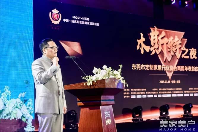 东莞市定制家居行业协会会长莫锐辉先生为“拥抱变化•并船出海”东莞市定制家居行业协会两周年表彰庆典致辞,莫会长说到过去一年里,协会秉承“团结、共享、互助、共赢”的理念,一方面,积极推进协会组织建设工作,加强协会的核心领导企业和会员企业的交流与合作;另一方面,带领会员走出去,以走访考察、组团参展的形式,扩大协会会员队伍,提高协会会员凝聚力,加强会员与会员之间的粘性,提升协会在社会的影响力。希望在我们的共同努力下东莞市定制家居行业协会能成为规范、活跃、团结一个的协会。