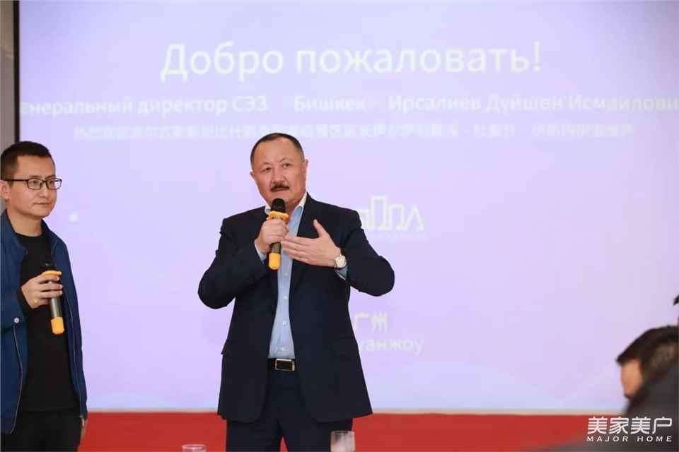 首先热烈欢迎吉尔吉斯斯坦比什凯克国家自贸区区长伊尔萨利耶夫·杜毅升·伊斯玛伊洛维齐的大驾光临,在这次会议上,他介绍了吉尔吉斯斯坦比什凯克的独特投资优势,并欢迎大家参加今年6月份在比什凯克举办的中亚—广东商品交易会,期待与大家在比什凯克再会!