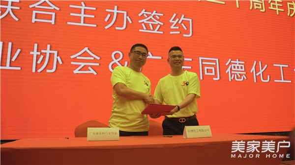 会上,大会联合主办、第八届理事会第四次工作会议协会单位、建构智能涂料厂思享会分会场承办单位、30周年大会支持企业签约纷纷与广东省涂料行业协会进行签约。联合主办方——广东同德集团何锡恩总裁在致辞中表示,今年是协会成立的三十周年,也是同德集团专注涂料树脂研发与生产的第26个年头,同德集团愿与广东省涂料行业协会一道,全力以赴做好会议的筹备工作。