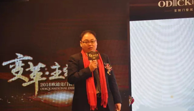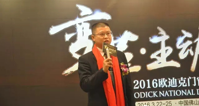 随后,营销副总朱山崎为到会的经销商及来宾讲述过去的2015年公司的总结及2016年欧迪克门窗营销战略规划。朱总表示2016将迎来产品、店面的升级全部升级,并且由欧迪克门窗特有的帮扶系统已经初见成效并且会将这一特点发扬放大以求打造多个千万大商。