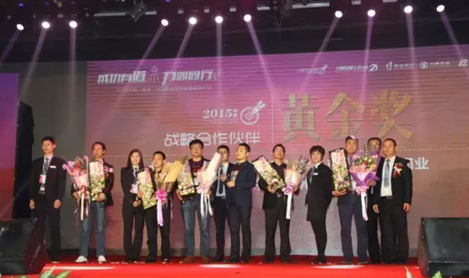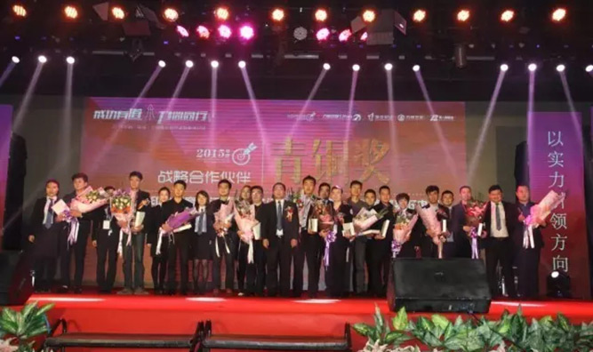 为感恩与回馈客户,力帆铝业特别设立了3个奖项青铜奖、白银奖和黄金奖。来奖励在2015年销售额前列的客户,其中还特地设立了万里挑一的战略合作钻石奖,获奖的是艾怩美门窗覃茂明先生,力帆还特意用无人机带着奖品现金支票3万元“从天而降”,而且在台上就让这张支票兑现,创意十足!