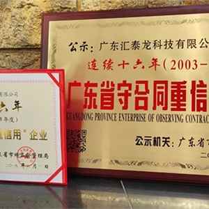 汇泰龙自2003年起,连续十六年获“广东省守合同重信用企业”称号,既是对汇泰龙恪守诚信、规范经营的有力印证,也是对汇泰龙优秀品牌信誉建设成果的充分肯定。