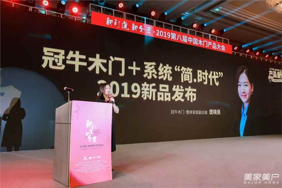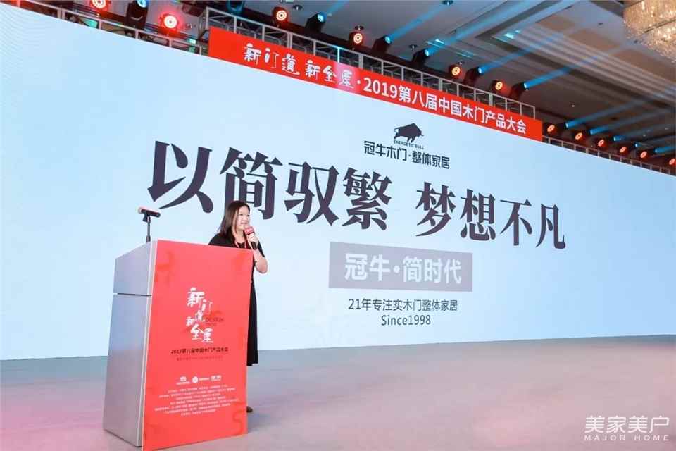 新门道·新全屋-2019第八届中国木门产品大会在广州香格里拉酒店盛大召开,冠牛木门·整体家居副总裁庞晓良女士在现场发表了《《以简驭繁,梦想不凡——冠牛“简.时代”2019新品发布》主题演讲。