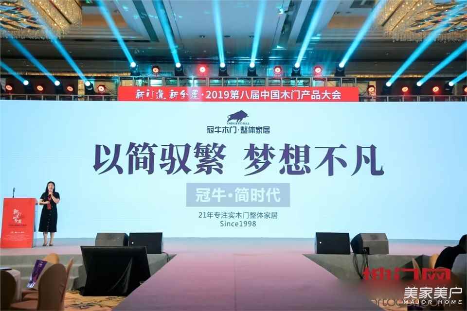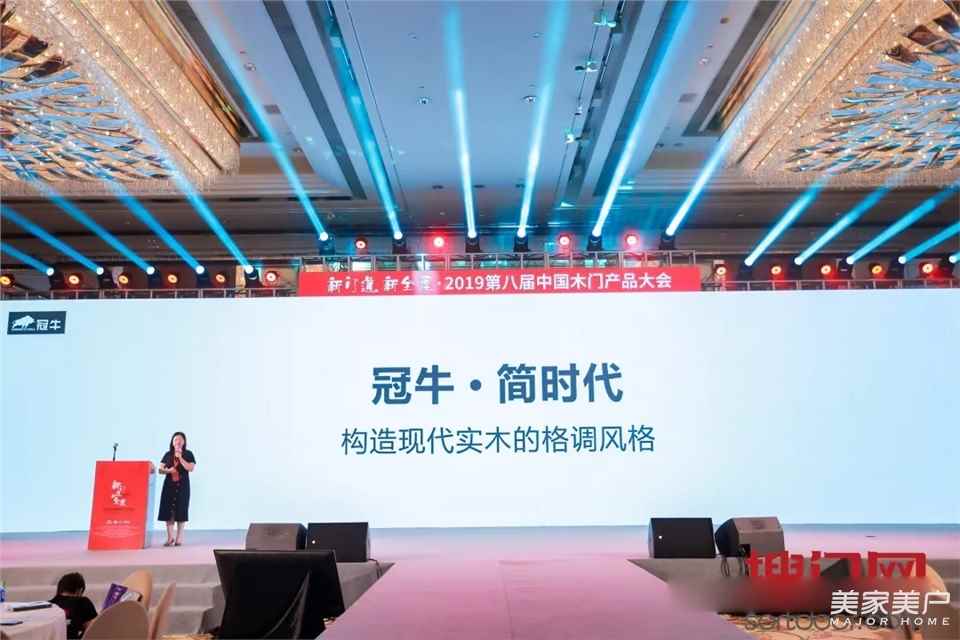 本届大会上,冠牛木门“简·时代”适此木门行业盛典之时发布,凭借其二十年专注木门及“简·时代”优秀的设计理念,从近百家参选作品中脱颖而出,一举夺魁2019中国木门+系统原创设计金星奖。冠牛新品“简.时代”以南美实木尤加利+高级莫兰迪色系,完美满足要颜也要品,还要看匠心的中国新中产阶级家庭高品质需求,奏响现场【最强音】。