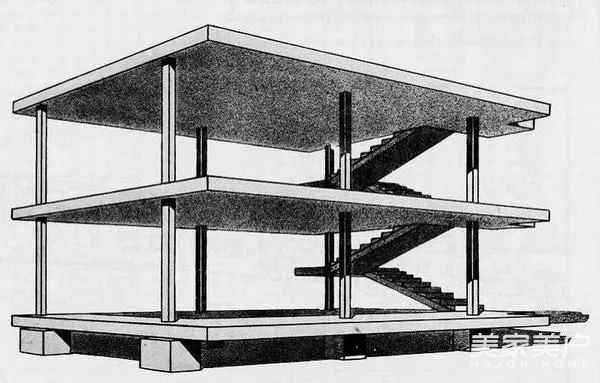 展位次入口立面以萨伏伊别墅为蓝本,将底层挑空、自由平面、自由立面、等现代建筑原则精准地复刻呈现,深刻地体现了现代主义建筑所提倡新的建筑美学原则。