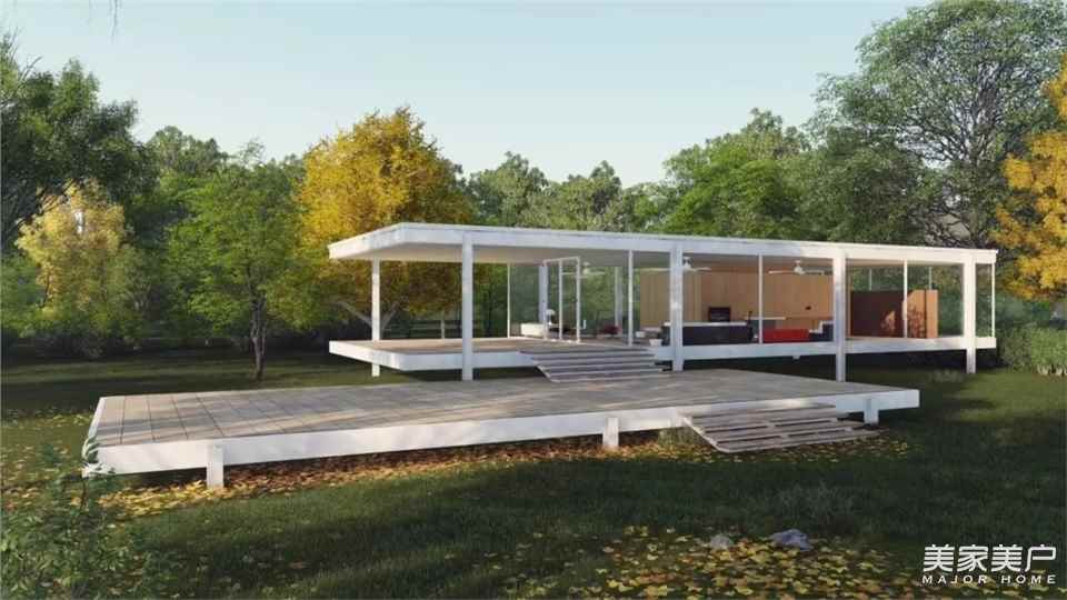 欧哲展示空间底端的VIP区域以经典建筑-范斯沃斯住宅为原型,运用大面落地窗简约设计,强化门窗作为建筑外围一部分的重要性。
