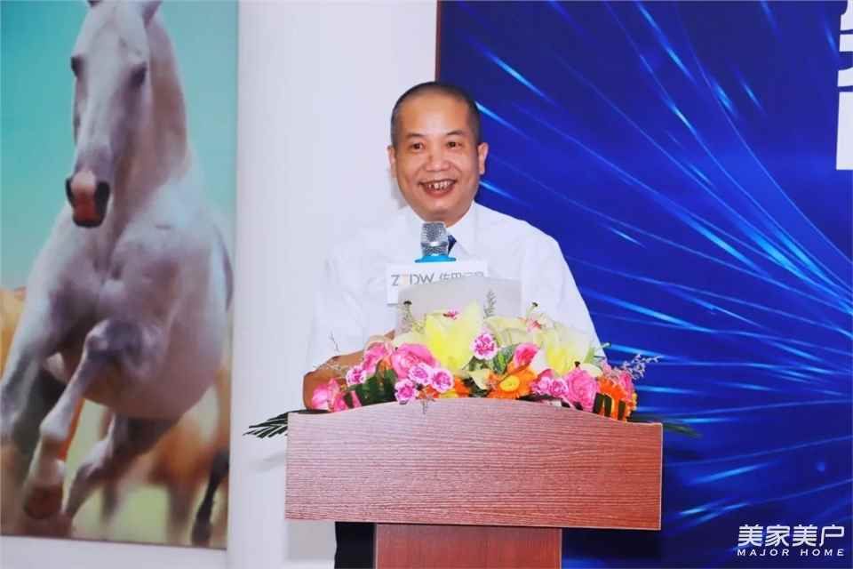 随后,广东省门窗协会监事长徐召礼先生上台致辞,他提到,作为广东省门窗协会副会长单位,佐田门窗在吴董的带领下,积极顺应时代发展潮流趋势,抢占“新零售”先机,率先推出智慧门店新零售设计体系,构建线下、线上一体化的生态化平台体系,实现传统门店向智慧门店转型。