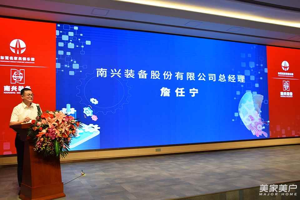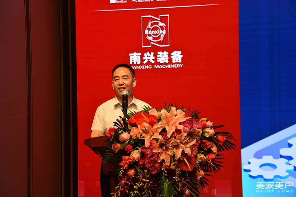 在交流会上,南兴装备股份有限公司总经理詹任宁发表致辞。在致辞中,詹任宁表示,为帮助企业加快在定制热潮与环保形势下转型升级的脚步,南兴装备积极提出家居企业智能化生产提供系统解决方案,助力国内定制家居企业加速向智能制造转型。他指出,今年由名家具展组委会将独立承办中国(广东)国际家具机械及材料展,对南兴装备等供应链上的企业而言,无疑会促进更多的成交,还将推动与大家居、泛家居领域的企业建立更深入的合作互动关系。