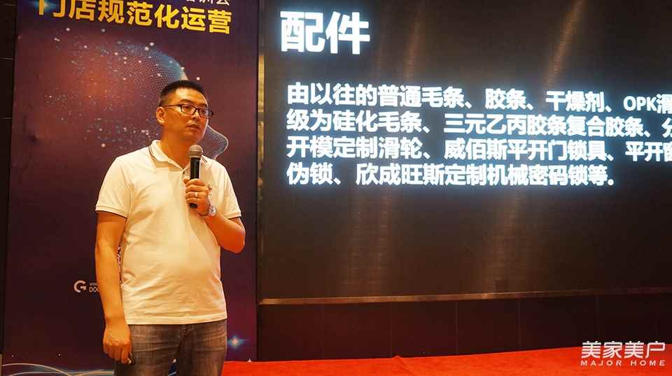 会上,四川金致尚品门窗有限公司董事长范泽金首先发言,代表公司热忱欢迎前来参加培训会的各位经销商,勉励大家在本次培训中收获新的知识,希望大家将获得的知识学以致用,在今后的销售、管理工作中更上一层楼。随后,范泽金作了“2019产品系统升级与新品预告”的演讲。演讲中,范泽金深入浅出为参会经销商讲解了产品系统升级的必要性与实用性。其中,设备、服务、配件、产品等方面的升级、换代成为了产品系统升级板块的重要内容。范泽金说:“金致尚品自建厂以来,设备经过几次的升级换代,现在已经完全可以把控生产源头。目前,数控设备正在增加和改换,预计8月上旬完成此项工作。”同时,金致尚品门窗在服务工作上狠下功夫,改变过去加工作坊式的单人传统服务模式,并且有望在年底全面实施、推行服务新高度。另外,金致尚品门窗全面升级门窗配套产品,自主开发定制各类专属配件。同时,将过去的普通断桥窗升级为多腔体系统断桥窗、普通平轨升级为阶梯式疏导型排水系统、单色料升级为非断双色型材。