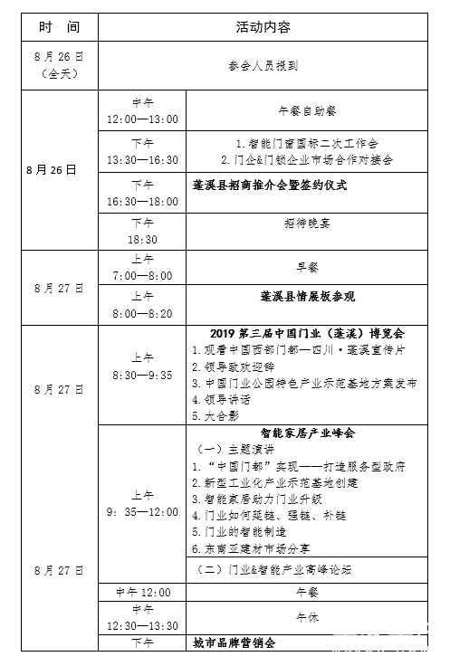 2019第三届中国门业(蓬溪)会议暨智能家居产业峰会将于2019年8月27日在四川蓬溪召开。会议以“智能+”产业为主题,探讨大环境下的智能产业升级,畅想智能的创新成果与产业领域深度融合,推动行业技术进步、效率提升和商业模式变革,推动产学研融合发展模式。