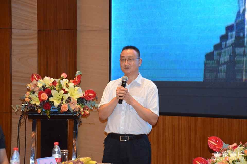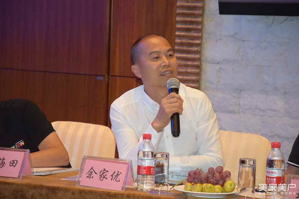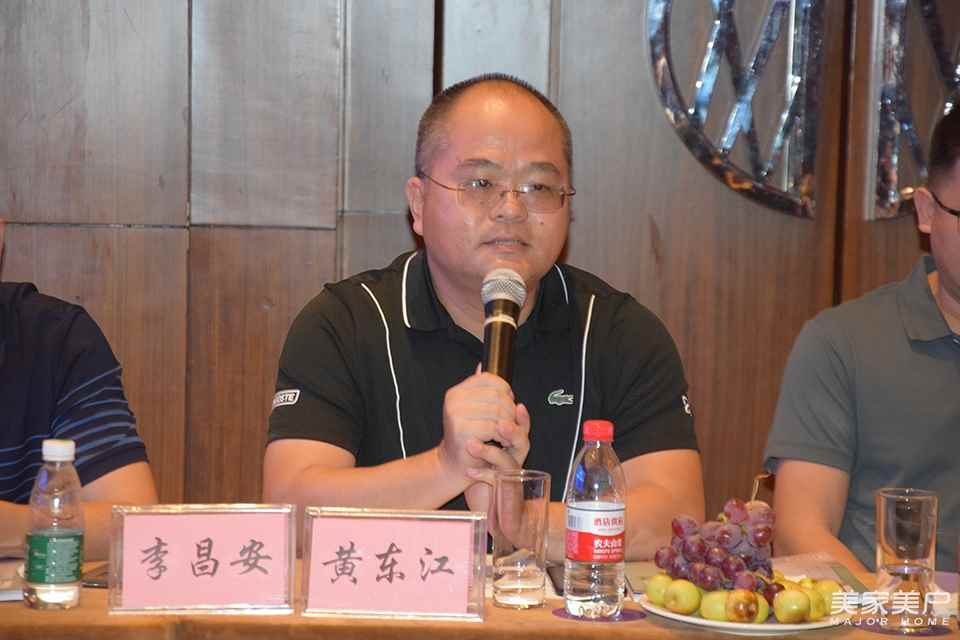 新标家居董事长黄东江在会上发言。他说道:“在向大家居发展的这条路上,新标也走了很多年。新标在很多年前就开始布局在大家居这一块,也走了很多的弯路,也在不停的在修正。企业究竟是走专业化还是一体化的发展路线,我们也做了很多尝试。新标将产品进行了细致的分割,分成门窗、木门、全屋定制等板块,然后组建专业化的团队,并在每一个环节当中把这个工作做得更加专业细致,根据行业发展的趋势和客户、消费者对这个行业的反应做出及时的调整。在新零售盛行的当下,企业如果能够跟得上消费者的消费需求的话,市场还是很大的。”