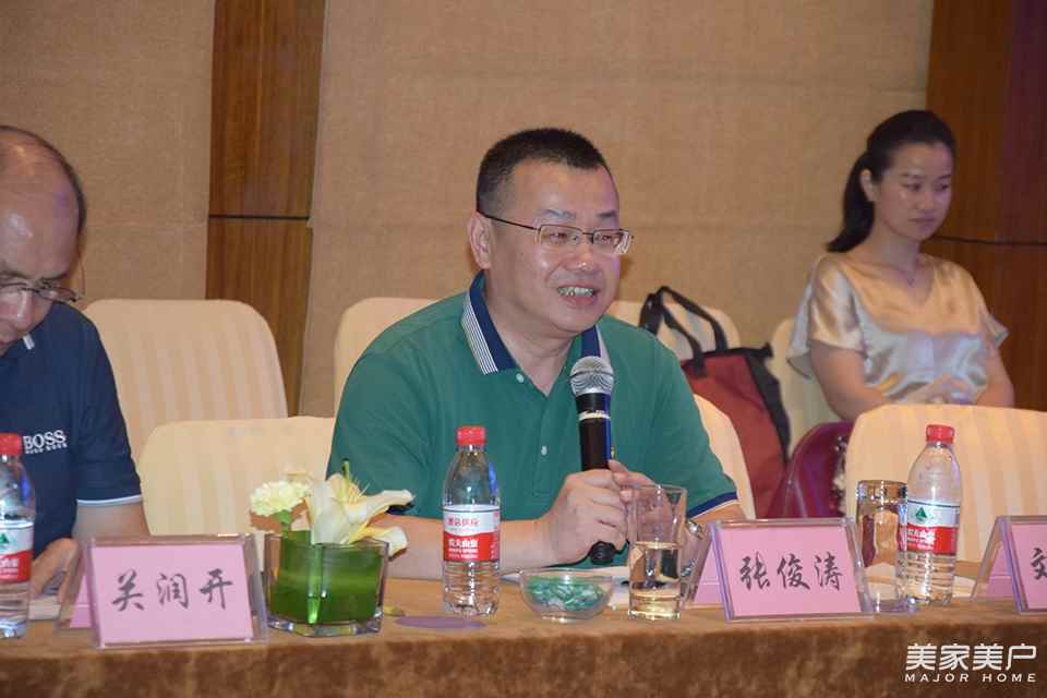 广东省门业协会会长、广东润成创展木业董事长关润开首先在大会上发言。他说:“今天召开的这个会议,就是要大家能够坐下来,探讨我们企业自身的发展以及我们的出路。虽然大的市场与环境对我们企业的经营有很大的影响,但是我们要理性应对今天这种市场的变化。我们今天参观了大宝漆这种生产的企业,在环保方面做的非常好,投入也很大。为此,我们要根据市场的变化以及国家政策的一些需求来改变,要跟着政府的脚步走,希望大家能够一起努力。广东省门业协会也会跟大家一起抱团取暖,抱团发展,打造出我们广东的名牌以及属于我们的自己平台,广交好友,合作共赢。”