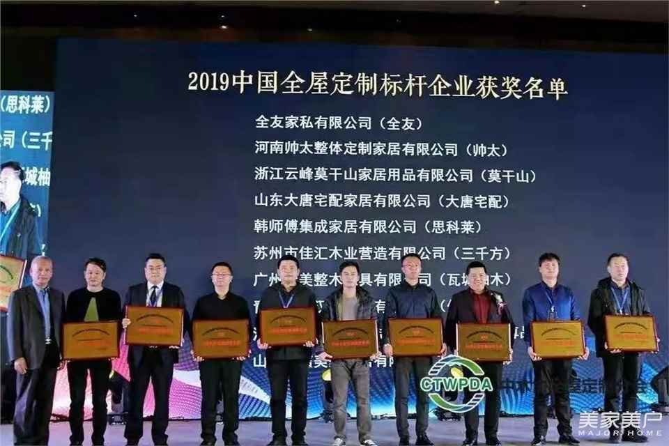 晚宴上,中国定制家居标杆企业联盟成立,对标杆企业进行了授牌,以起到标杆和榜样的作用,来自四川的全友家私有限公司(全友全屋定制),成都艾瑞卡家居用品有限公司,成都多伦斯商贸有限公司,成都乐的家居有限公司当选中国定制家居标杆企业。