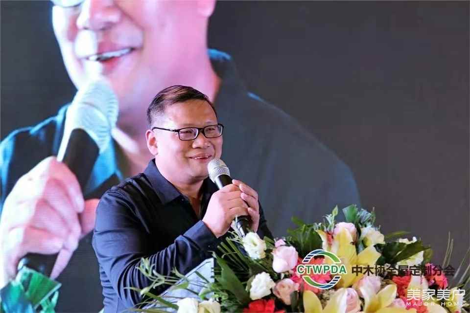 中国木材与木制品流通协会刘能文先生致辞,他对定制家居行业的发展与挑战进行了分析,勉励定制家居企业家与精英 ,继续开拓前进,不断创新,杀出一条新路,不断为定制家居行业的发展作出新的贡献。