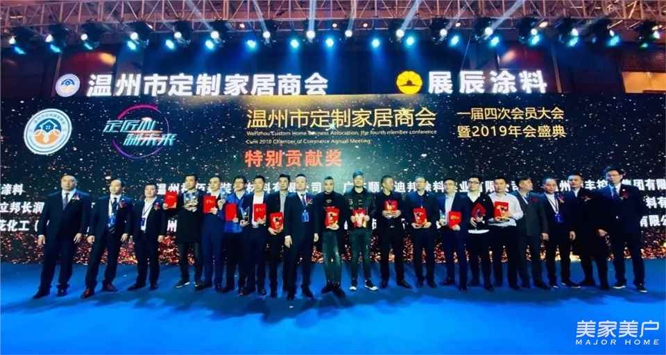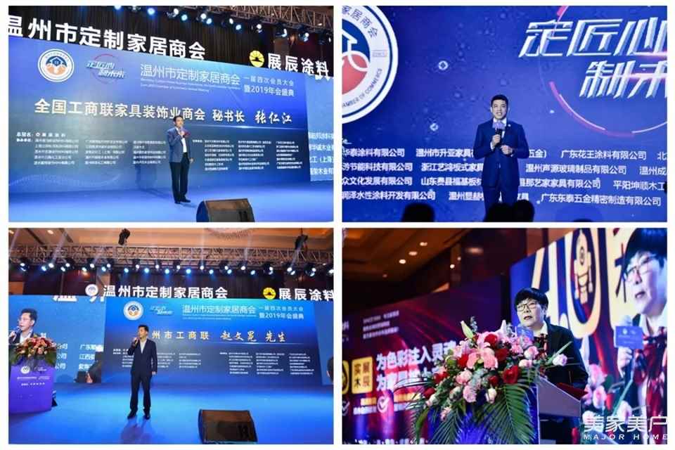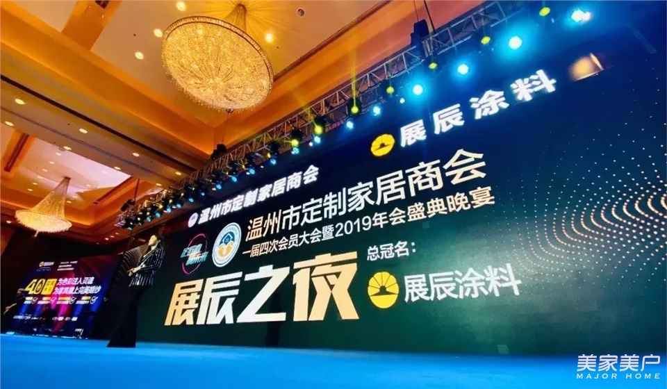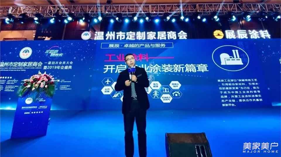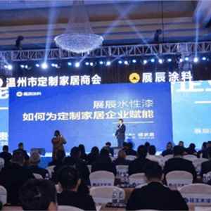 美丽鹿城,时尚温州。12月20日,温州市定制家居商会一届四次会员大会暨2019年会盛典在温州香格里拉大酒店盛大举行。大会以“定匠心·制未来”为主题,展辰涂料总冠名支持。全国工商联家居装饰业商会秘书长张仁江,温州市定制家居商会会长徐凤光、秘书长舒春莲、监事长季清华等,与来自家具、涂料、板材、机械设备等家居产业链上下游的500多位精英、嘉宾欢聚一堂,总结2019,展望行业未来发展。上海展辰营销总监杨求贵应邀出席盛典,并做主题分享。