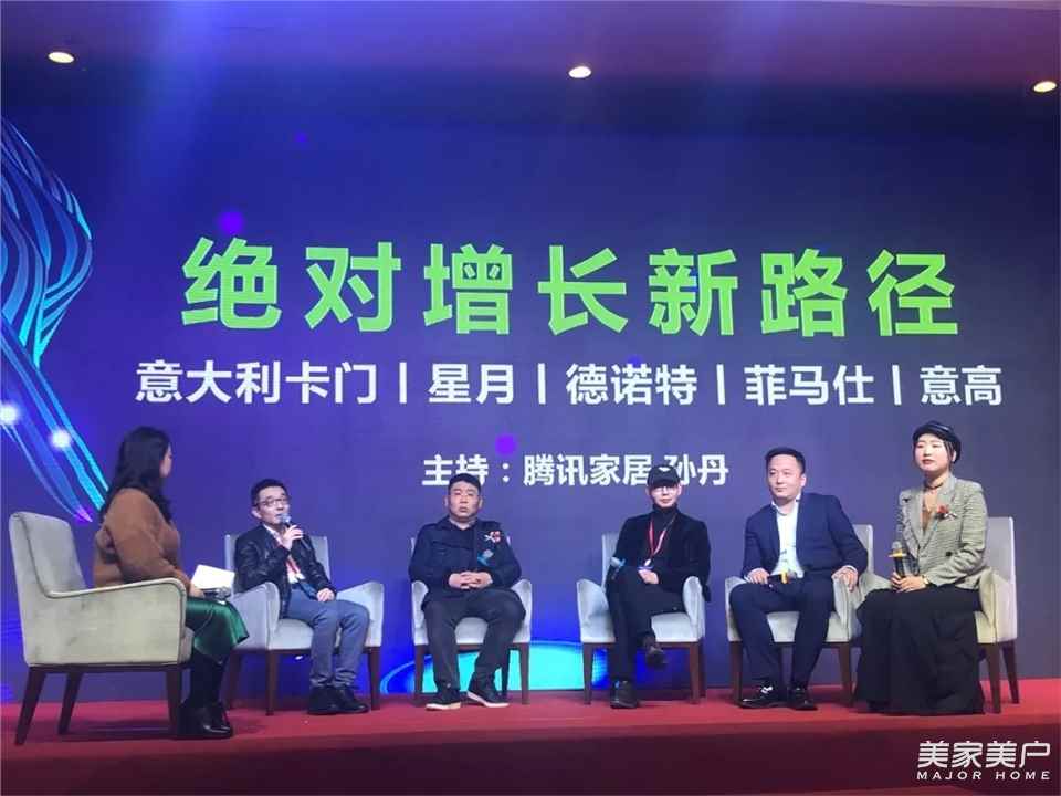 随后,大会进入论坛环节——由腾讯家居孙丹主持。意大利卡门陈君、星月营销总经理闵继威、万嘉集团德诺特总经理蒋百胜、菲玛仕总裁周清、意高装甲门CEO李翎同台分享关于如何保持企业绝对增长的心得和见解。唇枪舌剑,精彩不断,引得场下掌声不断。
