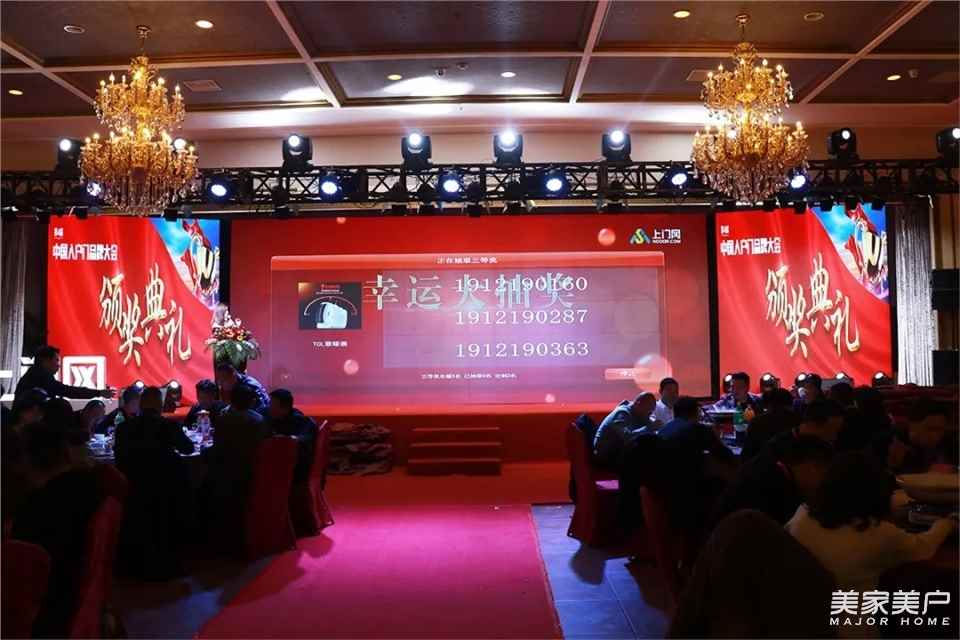 晚宴一开始,由上门网总经理吴家刚先生上台致祝酒词,他以高亢的嗓音感谢到场的嘉宾以及为这场大会做出支持与贡献的工作人员,并祝大家能够享受这美妙的行业聚会,畅饮畅谈!随后,主持人宣布激动人心的2019年入户门品牌颁奖典礼正式开始。