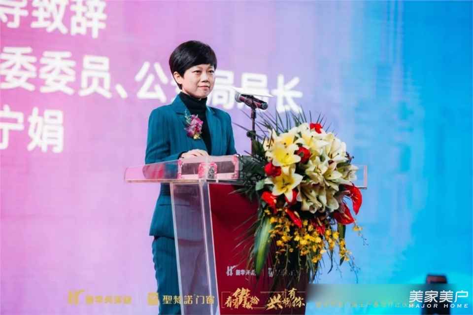 圣梵诺门窗董事总经理邝艳华致开幕词,感谢大家一直以来对新华兴和圣梵诺的支持与厚爱,圣梵诺全新投入建设的门窗和全铝家居生产中心,将在产能、品质、货期、研发等方面有一个质的提升,更好地为圣梵诺终端的家人伙伴们提供更优质的服务和更大的支持与贡献。