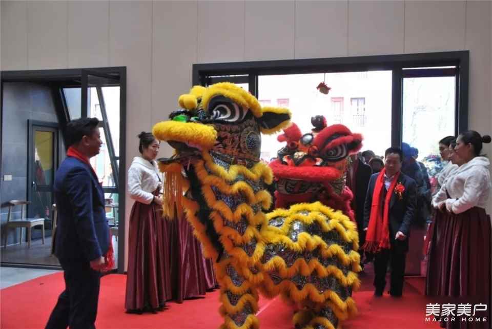 醒狮自东来,祥瑞满堂春。醒狮进门,采青百财,夏勇先生接青,迎财纳福。乔迁盛典圆满礼毕。