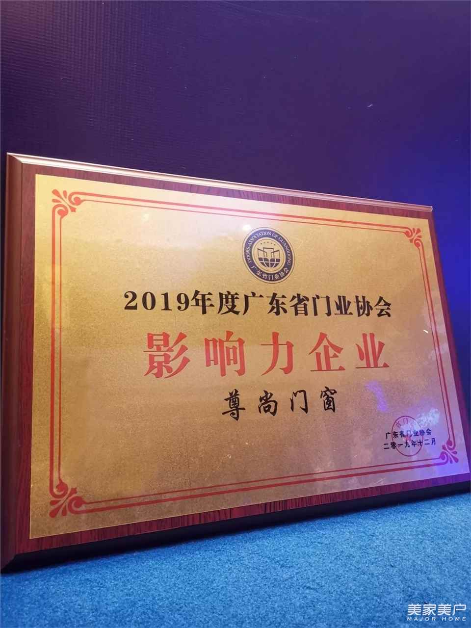 2019年12月30日,广东定制门窗高峰论坛会暨2019广东省门业协会年会举办。尊尚门窗在此次活动中荣获“2019年度广东省门业协会影响力企业”称号。