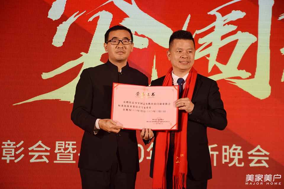 佛山市门业协会授予德技优品董事长《标准化技术委员会专家委员》证书