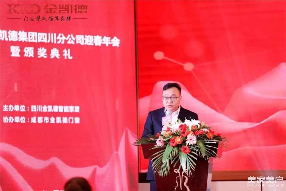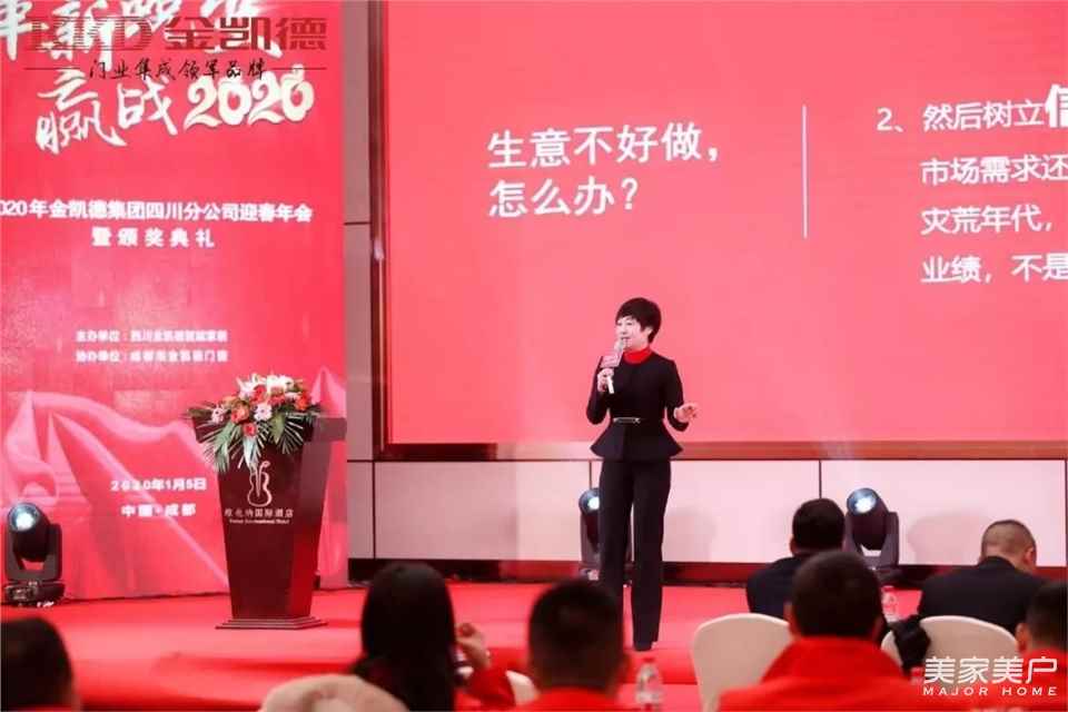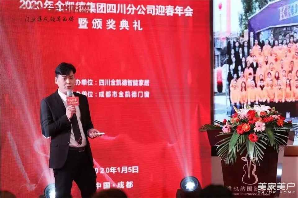 成都金凯德门窗总经理汪美琳女士激情昂扬的致辞拉开了今天盛会的序幕。回顾2019,金凯德奋勇向前,砥砺奋进;展望2020,只争朝夕,不负韶华。