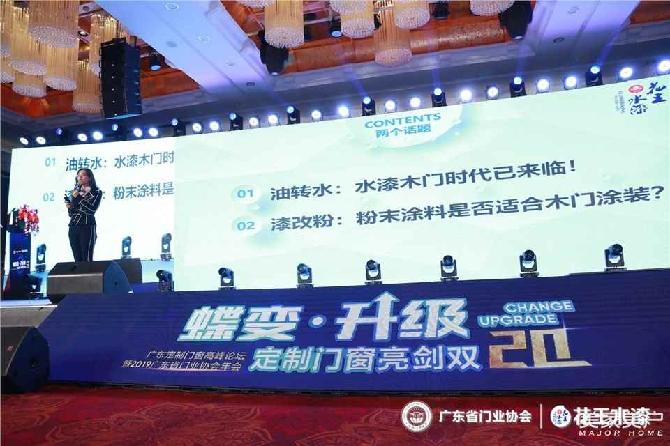 在2019年12月30日举行的广东省门业协会年会上,花王水漆创新技术中心总监孔霞博士以“花王水漆,助力木门绿色涂装”为主题,以“油转水”&“漆改粉”两大话题,对多种类水性漆的常见技术问题、发展趋势以及性能进行分析。