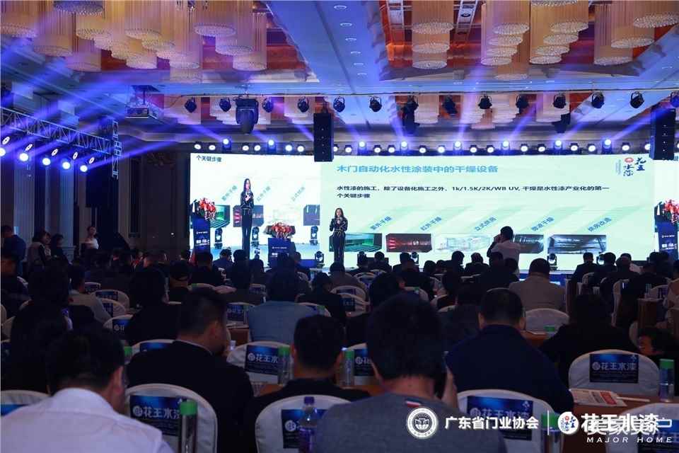 孔博士向与会嘉宾展示了花王水漆以行业前沿四大涂装工艺与经典产品为核心的整体解决方案,从工艺、涂装以及干燥等技术层面上提供高效成熟的“油转水”落地流程,为门企做好了迎接水漆木门时代的准备。
