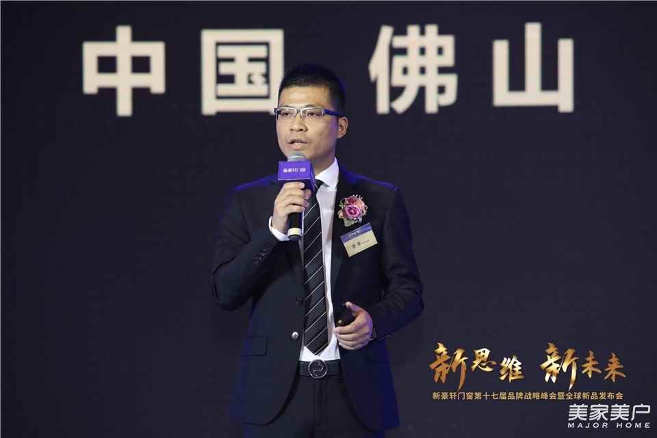新豪轩门窗董事长助理冯佐星在致辞中表示,中国是经济增长最快速的国家之一,也是全球最大的单体市场,国家品牌战略支持和消费升级趋势的利好,城镇化的推进、二手房交易的活跃、旧房翻新、二胎政策所释放的家装刚需,都让门窗市场大有可为。过去一年,新豪轩门窗进入了全新发展阶段,在产品、品牌、渠道及管理上都取得了新的突破。冯佐星还指出,2020年新豪轩门窗将站在实现跨越式发展的新起点,只要全体新豪轩人沉着应对,稳中求进,必将收获更丰硕的成果。