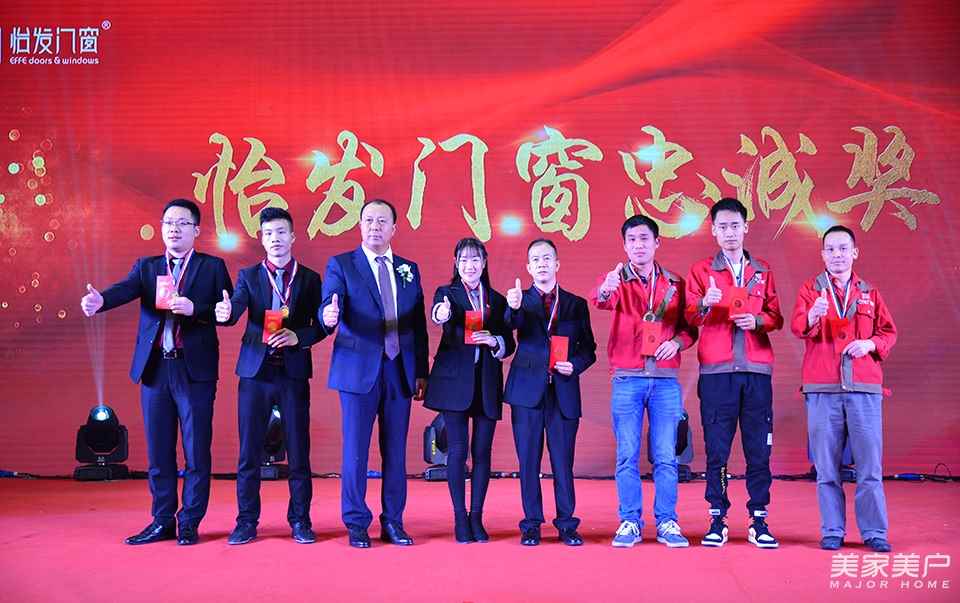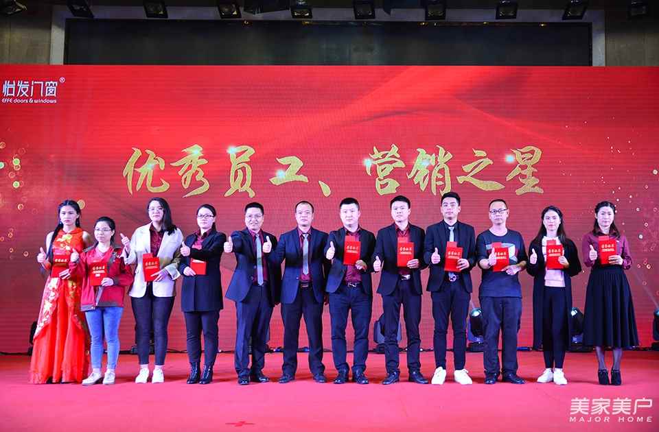 在怡发门窗年度优秀团队和优秀员工的表彰环节,怡发门窗董事长陈晓、总经理陈颖分别为优秀员工、营销之星、年度技术之星、优秀干部、年度优秀供应商、安全生产团队、忠诚奖等获奖者进行了颁奖,以鼓励他们一年来在各自工作岗位上所做出的贡献。