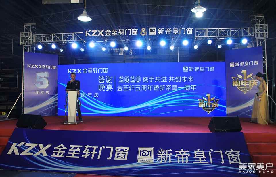 2020年1月7日, 2020金至轩门窗五周年暨新帝皇门窗一周年答谢晚宴在厂部隆重举行。佛山市金至轩、新帝皇门窗有限公司董事长梁丽华、总经理赵剑飞携友好嘉宾、合作伙伴、供应商,以及企业全体员工齐聚一堂,共同见证金至轩门窗五周年暨新帝皇门窗一周年庆典。