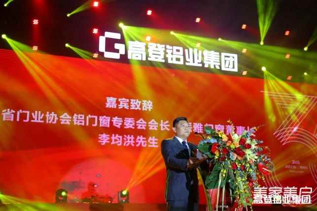 全国工商联家具装饰业商会执行会长张传喜、全国建筑幕墙门窗标准化技术委员会秘书长王洪涛致辞、中国建筑金属结构协会铝门窗幕墙分会会长董红、广东门业协会铝门窗专委会会长兼派雅门窗董事长李钧洪先后上台致辞,对高登铝业35年来所取得的优异成绩与辉煌以及对行业的贡献表示认可。