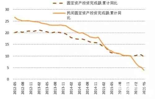 2009年起,国有企业投资增速迅速提升,外商投资大幅跌落;2015年以后民间投资增速的断崖式下跌,以及外商投资的反复摇摆。从占比来看,2016年开始民间投资占总投资的比重,多年来首次出现下降,这即便在“四万亿”时期也没有出现过。