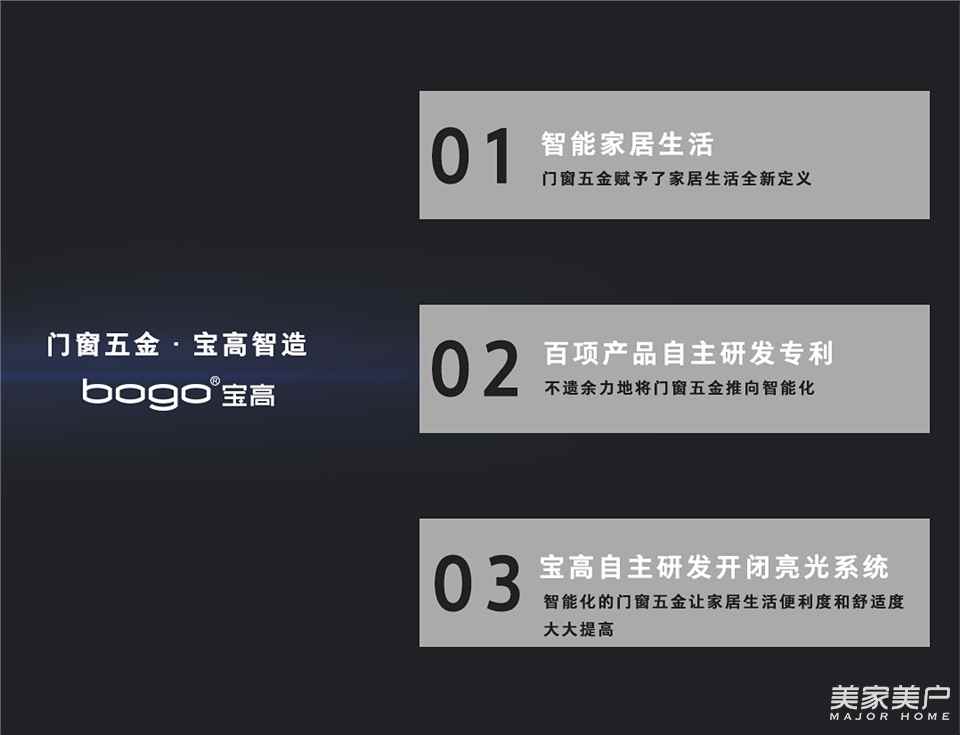 宝高自主研发开闭亮光系统目前已覆盖宝高多款产品,随智能化的门窗五金普及让家居生活的便利度和舒适度大大提高,捕捉每一个生活场景的细节,认真分析优化产品功能,让宝高芯融入门窗五金当中。