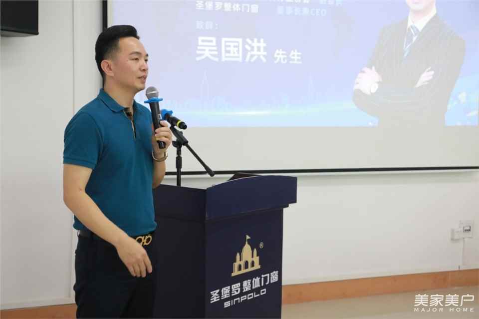 公司各中心班长以上人员以及获奖员工参加会议,佛山市门窗业协会会长、全国工商联家具装饰业商会门窗专业委员会执行会长、广东省门业协会常务副会长、广东省建筑装饰材料行业协会副会长、圣堡罗整体门窗董事长吴国洪先生特邀出席。