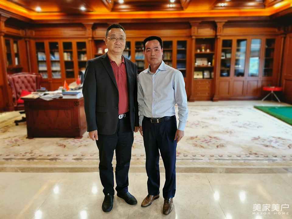澳达树熊涂料(惠州)有限公司董事长陈日云(左),广东省门业协会会长、广东润成创展木业公司董事长关润开(右)