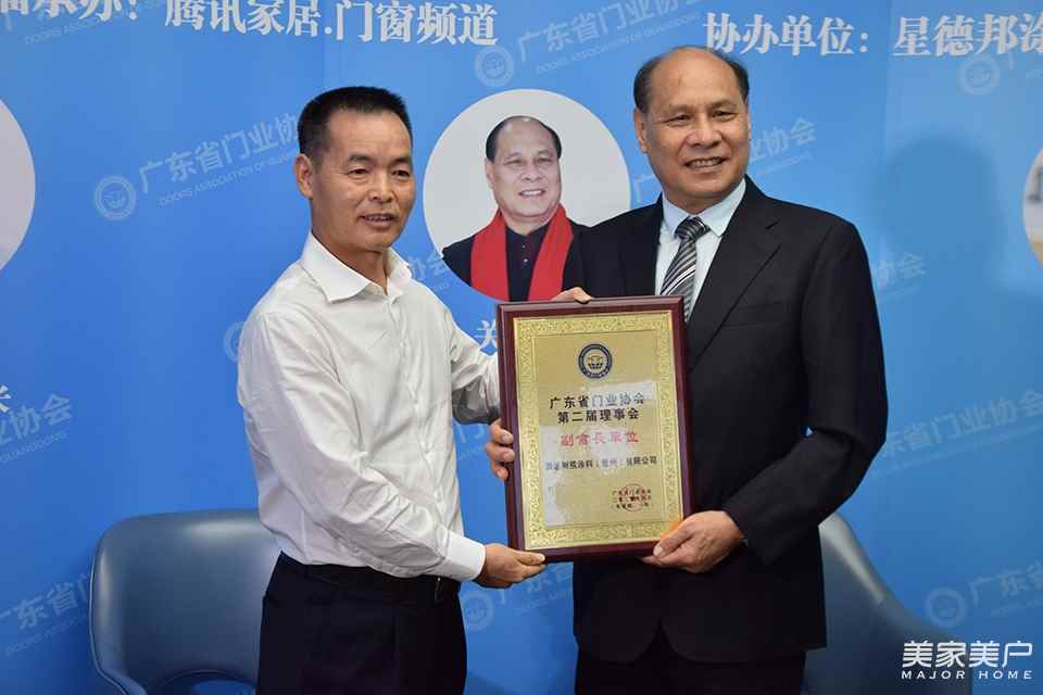 5月8日,在广东省门业协会办公室,广东省门业协会会长、广东润成创展木业公司董事长关润开授予澳达树熊涂料(惠州)有限公司董事长陈日云“广东省门业协会副会长单位”荣誉牌。
