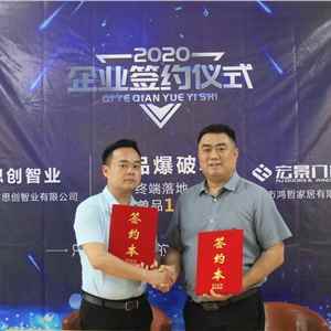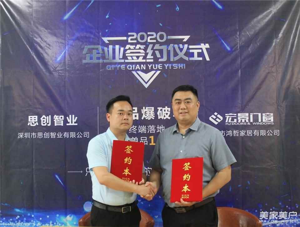 ▲ 宏景门窗汪总(右)与思创智业李总签约