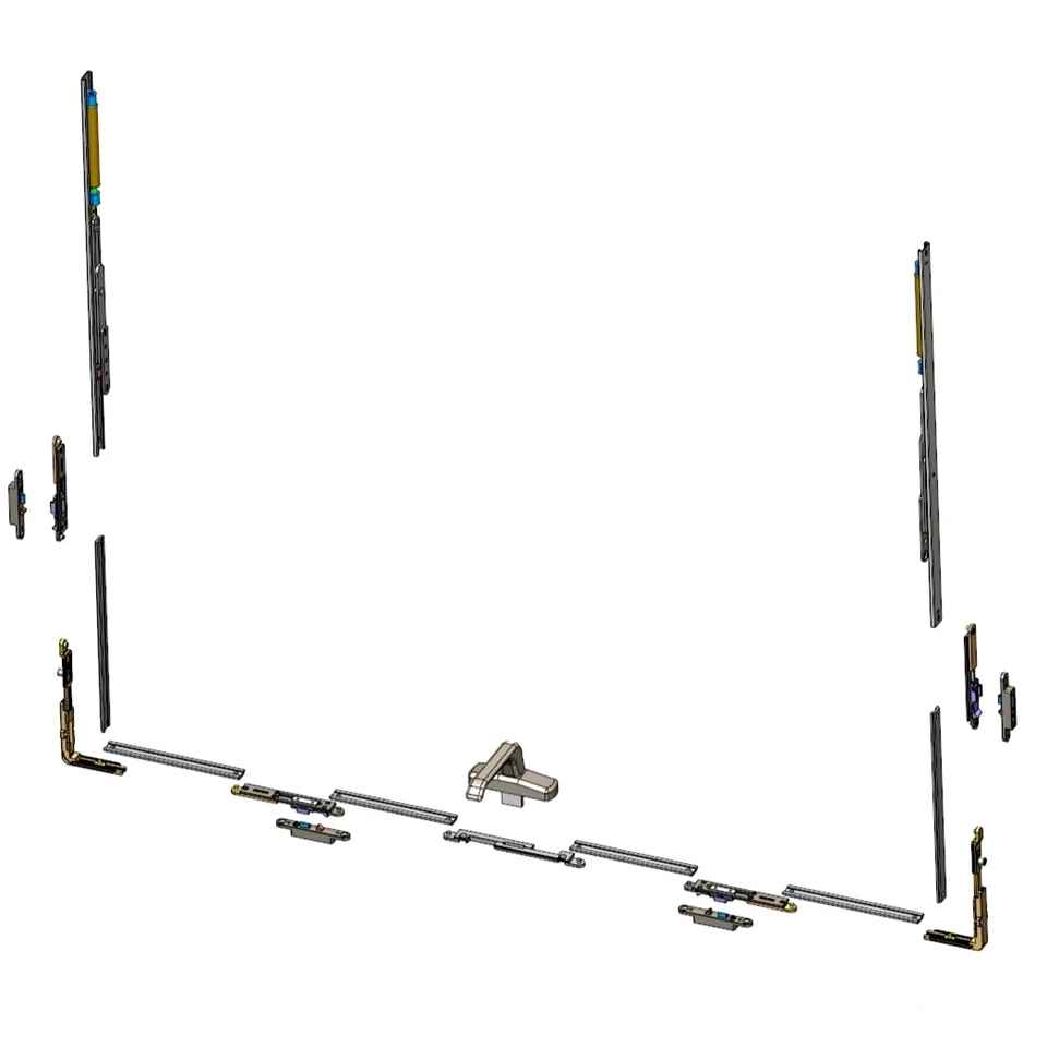 气动定位撑、爬升块(上)、爬升块(下)、锁座部件、锁闭部件(右)、转角器、拨叉执手、转换器、锁闭部件(左)、铝连杆。