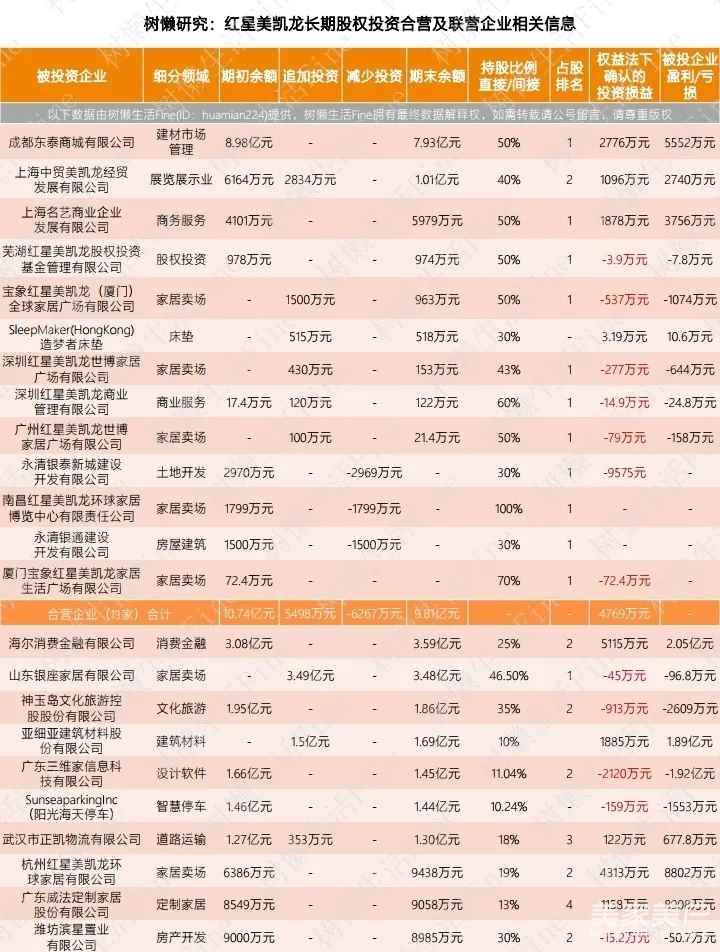 为了更全面地挖出红星美凯龙过去几年的所有投资动作,「树懒生活Fine」深扒出了全网最细致的红星投资数据(这里只展示一部分)。