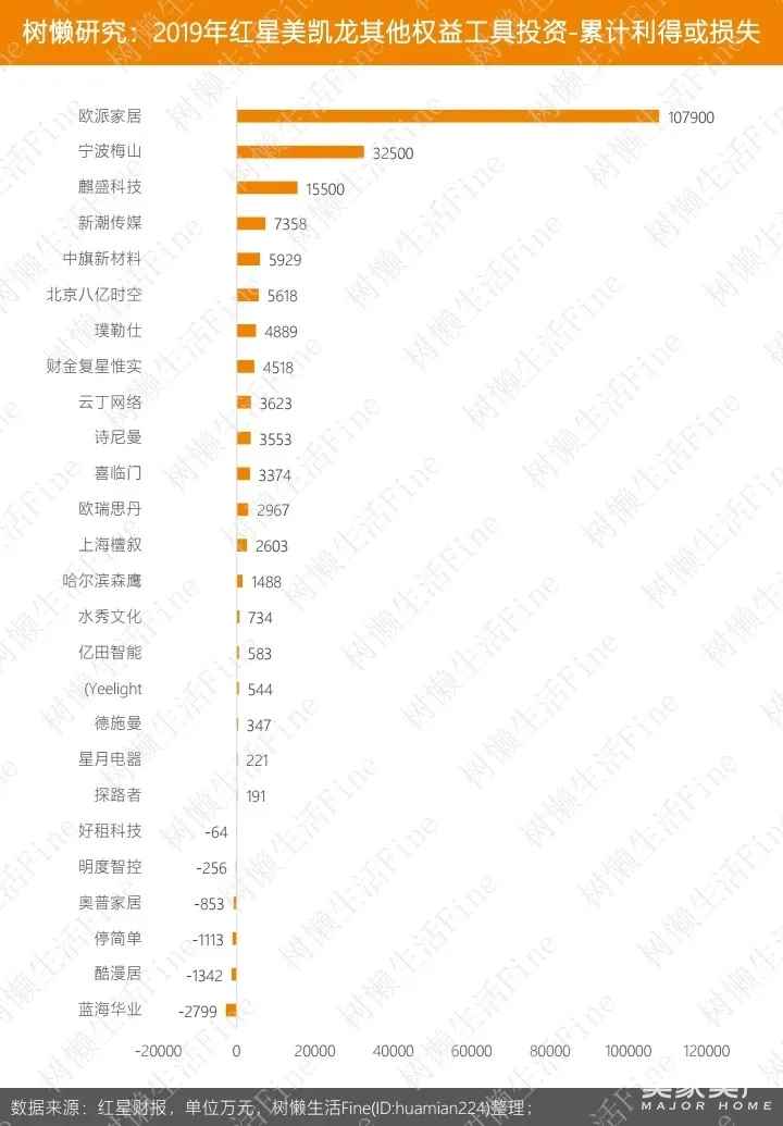 从红星美凯龙过去投资的业绩来看,有些钱的确花的很超值,其中不乏一些明星项目,比较典型的是“欧派家居”,在2017年3月欧派家居上市前夕,红星美凯龙投资欧派家居1.58亿元,占股4.99%,而后者上市之后,给红星美凯龙带来的回报超过20亿元,着实有点让人羡慕,负责这个项目的团队,假设拿出10%做奖金,其获得的投资回报,多少个0,咱就不数了……