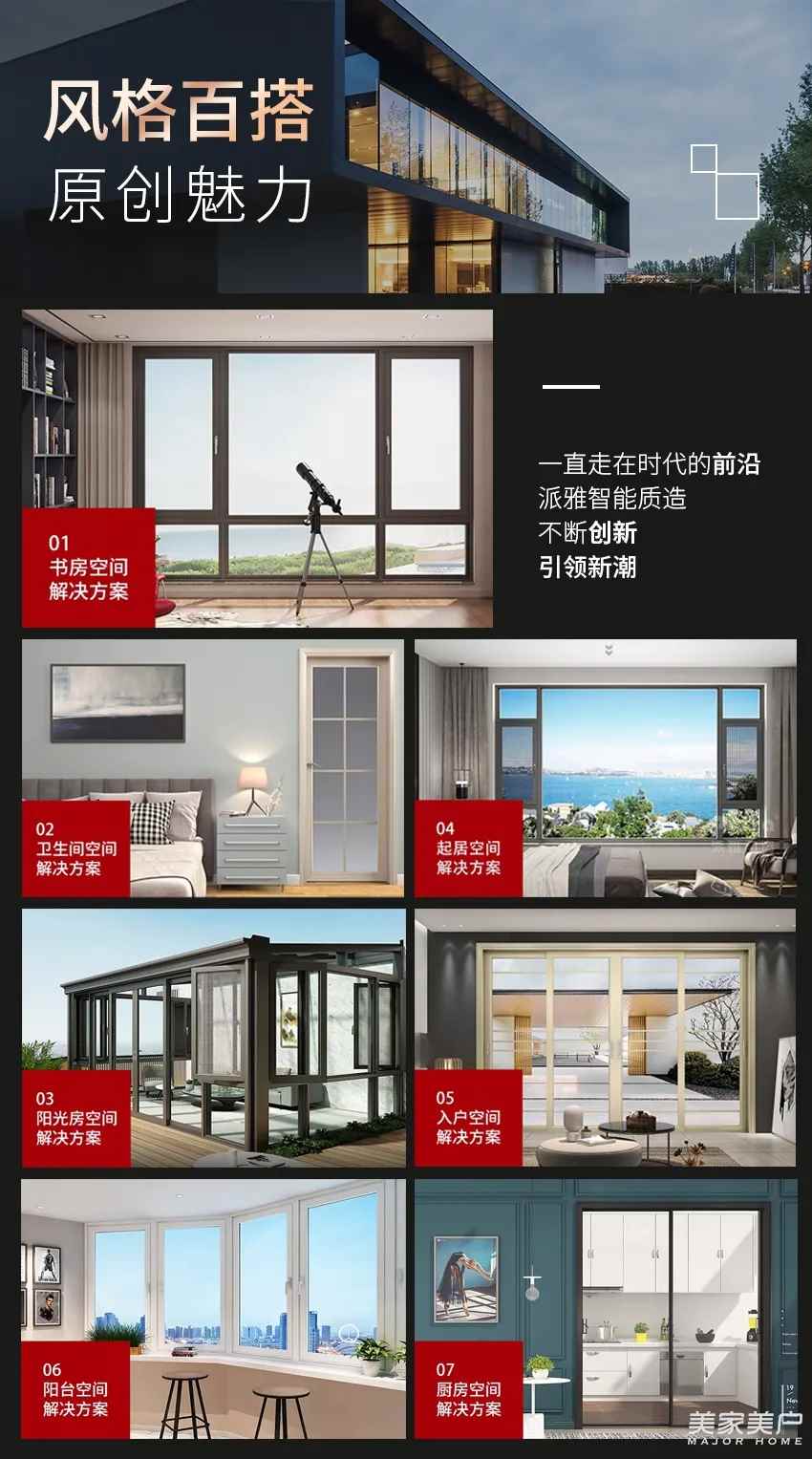 抓创新就是抓发展,谋创新就是谋未来。2008年国内首家引进意大利沙面木纹转印技术,将产品的外观进一步艺术化,满足国内不同的装修风格,掀起了行业追风的热潮。2009年斥巨资独家引进世界门窗三大系统之一的意大利罗克迪系统,并在此系统上进行了三次升级改造,首次将“系统”这一概念引入国内。近两年以”轻奢,极简“的产品风格,高调亮相中国建博会,受到了行业的高度关注和消费者的青睐!