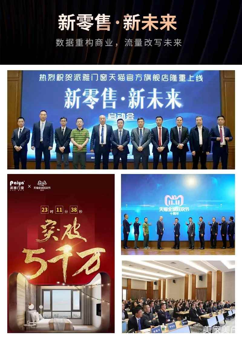 派雅门窗借助天猫商城着力新零售营销模式,于2018年双11全面启动“天猫新零售”,联动终端店面运营,线下资源融合“人、物、场”全面升级,提升终端数据覆盖率,进行线上渠道推广+线下设计体验馆+场景模拟设计软件的“沉浸式全场景零售”,全面开启终端店面数字化营销模式,是派雅基于行业发展的探索,布局派雅门窗全渠道生态闭环驱动派雅创新新零售模式,更是为给消费者带来更高效、更便捷、更美好的消费体验以及消费场景。